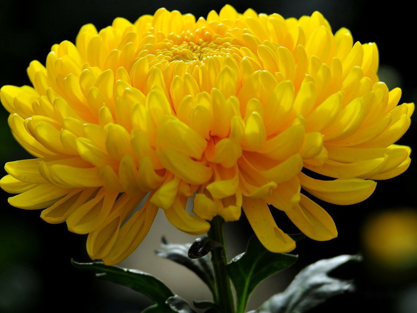 Растение обладает крепким, ровным и хорошо облиственным стеблем. Соцветия имеют идеальную форму и достигают диаметра 15-20 см. Цветки ярко-желтые, насыщенного и чистого оттенка, образуют крупные и эффектные шапки. Примечательно, что цветение происходит без необходимости использования искусственного короткого дня.